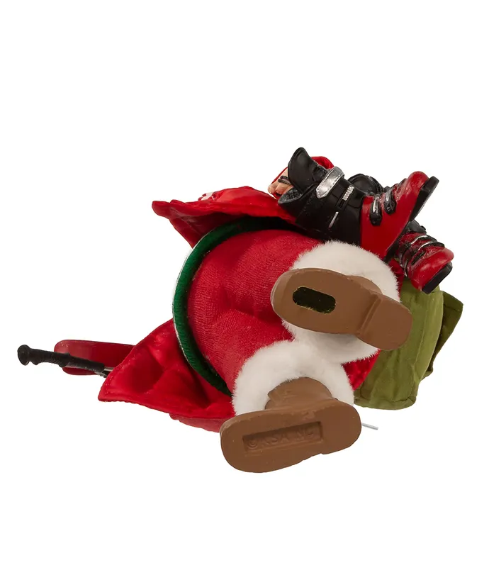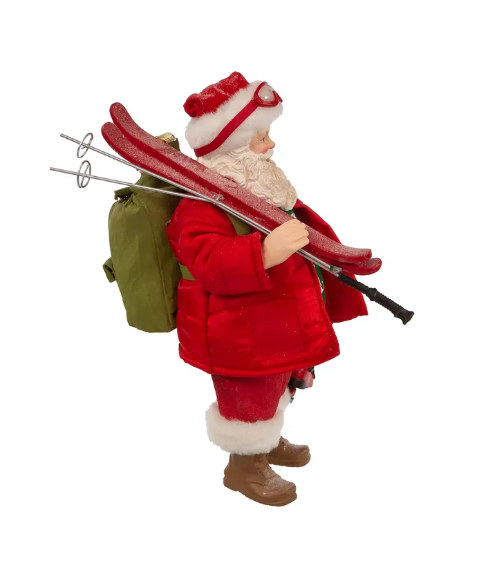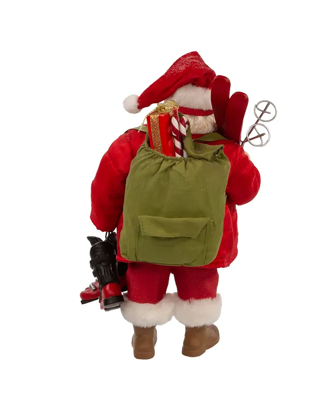 Part of Kurt Adler’s Fabriche collection the 10-5″ Fabriche Santa with Skis is a playful and festive holiday decoration that is sure to bring cheer to any home- This charming figurine features a jolly Santa Claus ready to hit the slopes dressed in a green “Merry Christmas” sweater a red and white ski suit and carrying a pair of skis and ski boots- The Santa figure is crafted from high-quality fabric and has intricate details including a white beard and a cheerful expression- Standing at 10-5″ tall this Fabriche Santa with Skis is the perfect addition to any holiday display and is sure to be a hit with winter sports enthusiasts and Santa fans alike-
