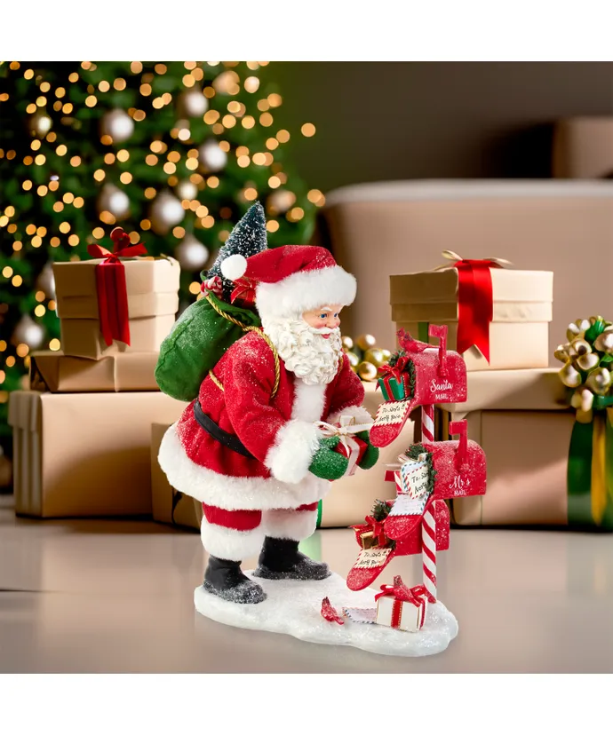 CompareAdd to wishlistThis 10-5″ Fabriche Santa with mailbox is a fun and festive addition to your holiday decor or collection- It features Santa standing next to a mailbox checking his mail-