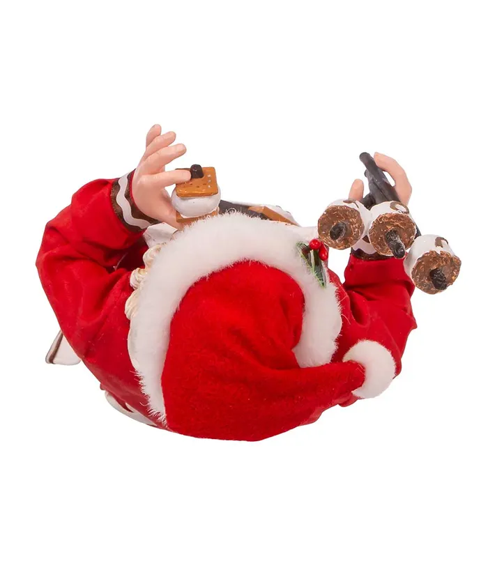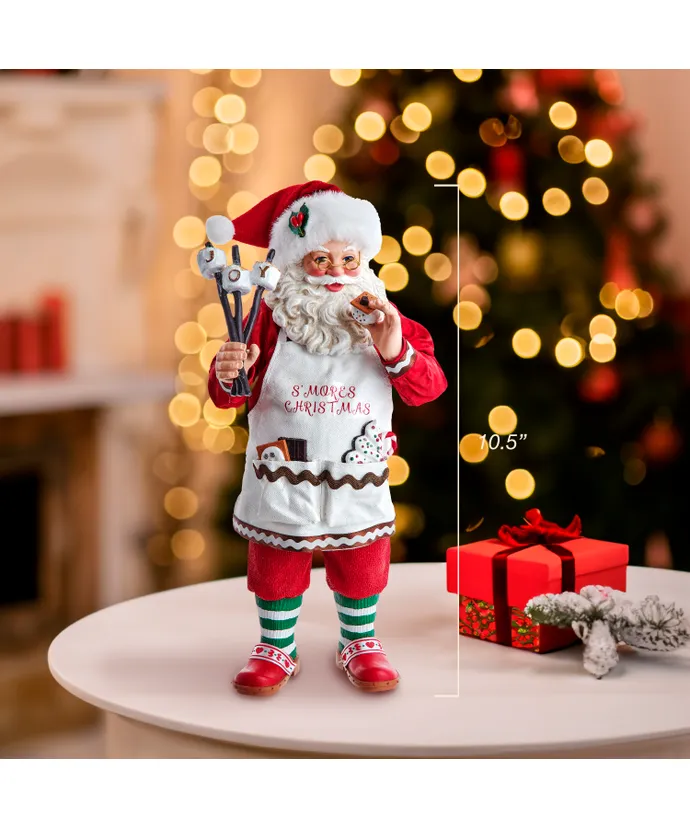 Part of Kurt Adler’s Fabriche collection the 10-5″ Fabriche S’mores Santa is a beautifully crafted holiday decoration that is sure to bring joy and cheer to any home- This figurine features a charming design of Santa Claus enjoying some delicious s’mores- The marshmallows spell out JOY while Santa’s apron features the phrase “S’MORES CHRSTIMAS”- The intricate details make this figurine a truly unique and special addition to your holiday decor- Whether displayed on a mantle shelf or tabletop this delightful S’mores Santa is sure to be a hit with all your friends and family-