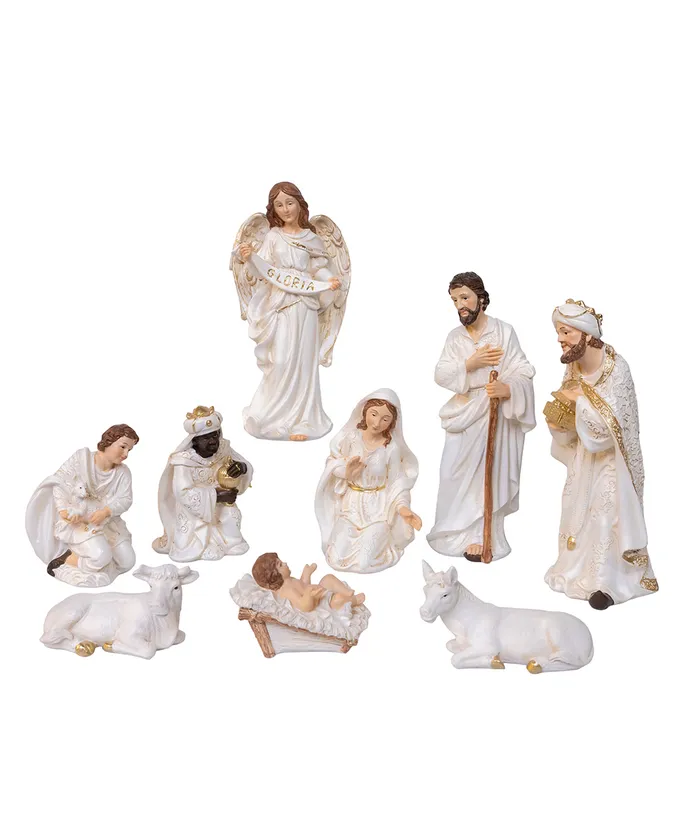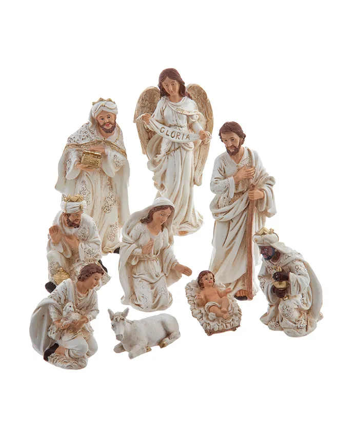 Bring the true meaning of Christmas into your home with Kurt Adler’s beautiful 2-8.25″ Nativity Table Piece, 10-Piece Set.