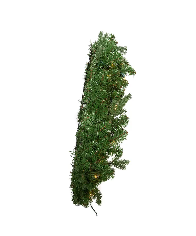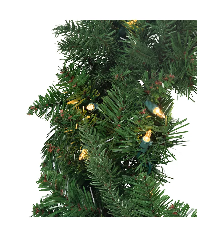 This 24″ Pre-Lit lighted Jackson Pine wreath from Kurt Adler is a gorgeous addition to any holiday décor. Perfect for hanging on doors to welcome all with holiday cheer.