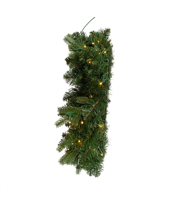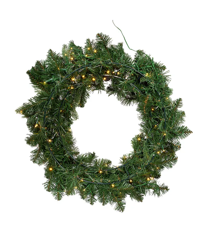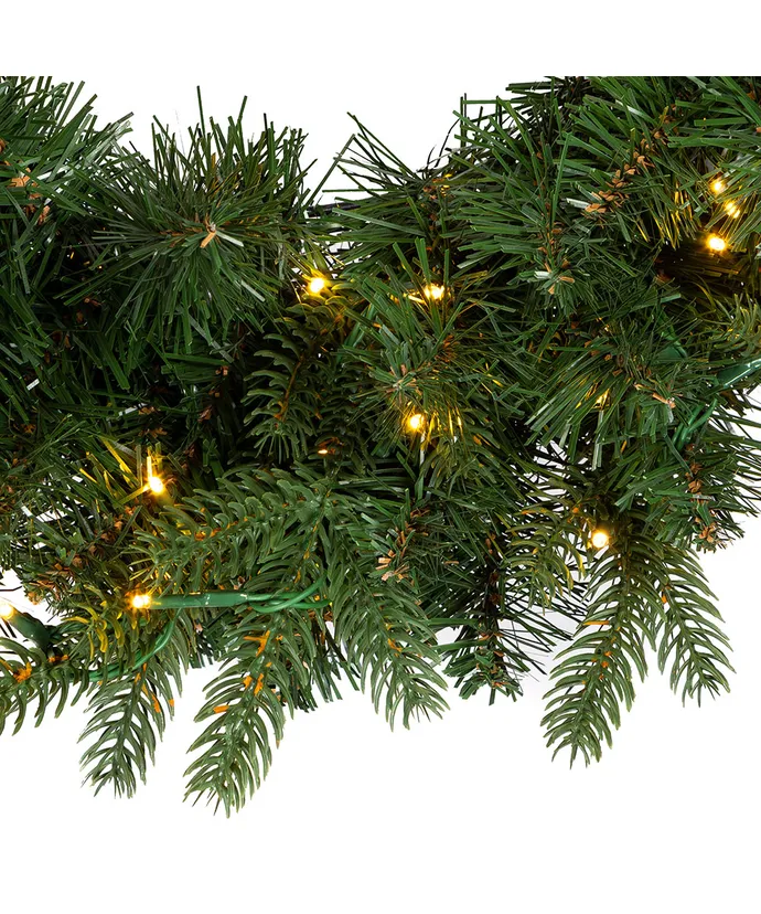 This 24″ Pre-Lit LED lighted Noble Fir wreath from Kurt Adler is a gorgeous addition to any holiday décor. Perfect for hanging on doors to welcome all with holiday cheer, this wreath has 210 pointed tips and 150 warm white 3MM LED lights.