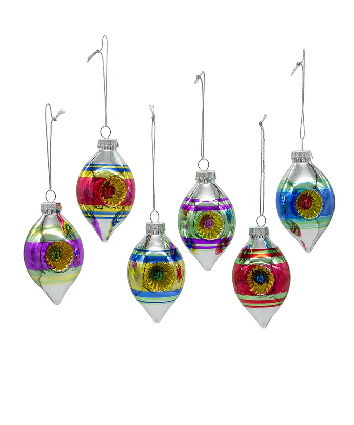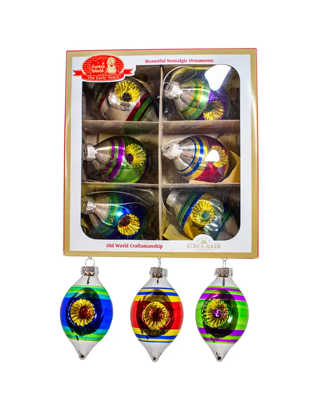 This 3.5-Inch Glass Early Years Finial 6-Piece Ornament Set is part of the Kurt Adler Early Years collection, which is comprised of vintage-style tree ornaments and other items of holiday décor that have all the old-world nostalgic charm that you remember from years gone by. Each finial shaped ornament in this 6-piece set measures approximately 3.5″ and is accented with a colorful painted ring design and glitter.
