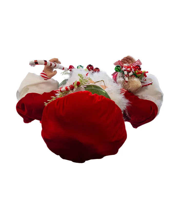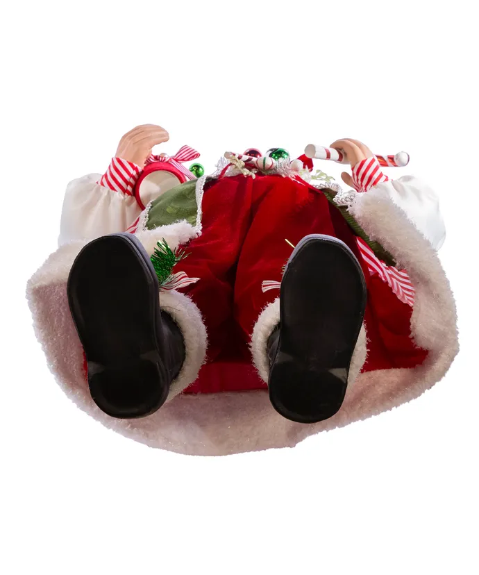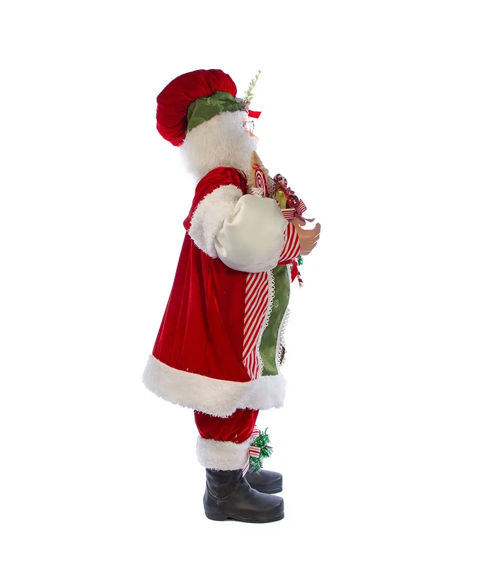 This 36-inch Kringle Klaus red and green elf with candy from Kurt Adler is a fun and festive addition to any holiday decor- Part of the Kringle Klaus collection- This elf is wearing a red white and green outfit with a matching hat- In one hand he is holding a red and white peppermint candy cane and in the other he is holding a red bucket filled with assortment Christmas treasures-