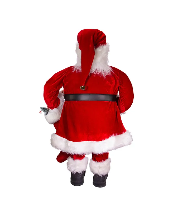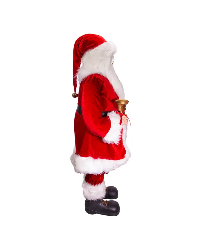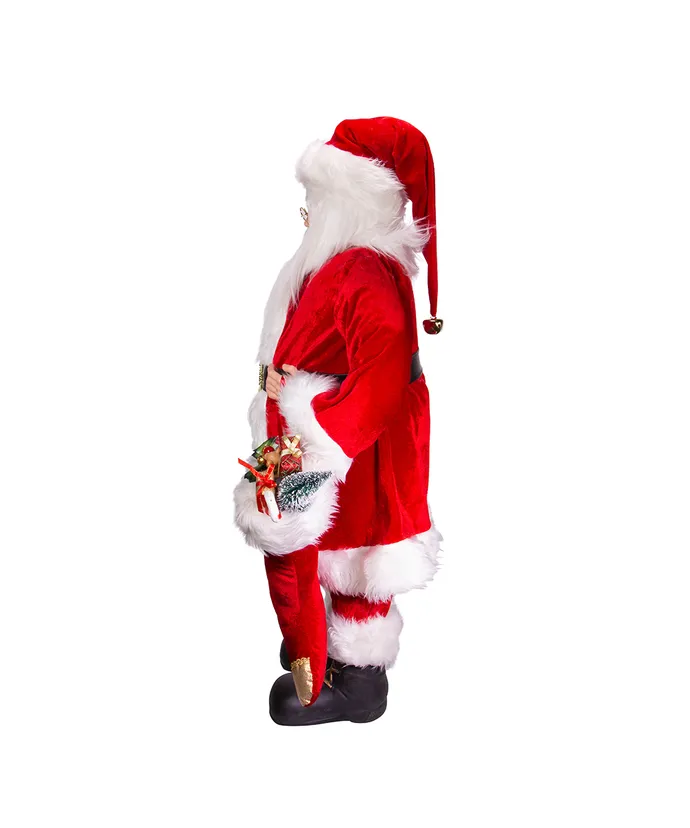 This 36-inch Kringle Klaus Red Standing Santa from Kurt Adler is a fun and festive addition to any holiday decor- Part of the Kringle Klaus collection Santa is featured here wearing his classic red and white suit and hat- In one hand is a gold-colored bell and in his other hand is a red and white stocking filled with classic Christmas treats-