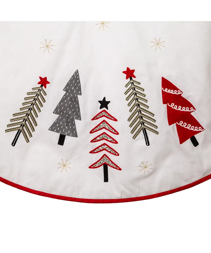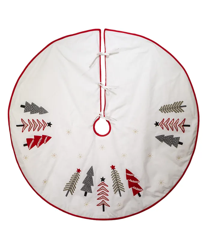 This Kurt Adler red and white holiday Christmas Home tree skirt is a fun, festive way to add to the décor of your Christmas tree. Its bright red color is trimmed in white and has white trees and a white Christmas home appliques.