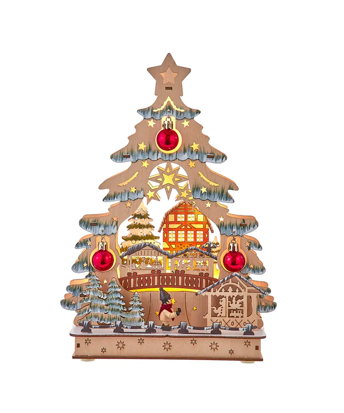 Illuminate your holiday decor with Kurt Adler’s 8.3″ Battery Operated LED Lighted Tree With Village Scene Table Piece. This captivating decoration features a beautifully crafted tree that serves as a stunning backdrop for a charming village scene, bringing the magic of Christmas to life. Made from high-quality materials, this delightful piece showcases intricate details and vibrant colors, creating a warm and inviting atmosphere. The soft LED lights illuminate the scene, adding a cozy glow that enhances the festive spirit of your home.