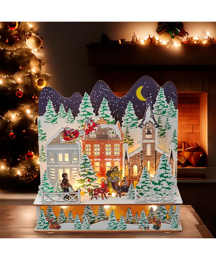 Kurt Adler’s 9.8″ Battery Operated LED Lighted Christmas Tree Village is a delightful and enchanting holiday decoration that brings the charm of a miniature winter village to your home. This captivating Christmas village is intricately designed and features warm LED lighting to create a cozy and festive atmosphere. This decoration includes a miniature Christmas village scene, complete with tiny houses, trees, snow, and other holiday elements. It’s like having a tiny winter wonderland right in your home. The village is illuminated with energy-efficient LED lights, providing a warm and inviting glow to the scene. LED lights are safe, long-lasting, and create a cozy ambiance. Christmas villages are a cherished holiday tradition that evokes nostalgia and captures the essence of the season. They have a timeless appeal that resonates with people of all ages. It is a heartwarming and enchanting addition to your holiday decorations. Its illuminated scene and intricate details invite you to immerse yourself in the holiday spirit. Whether displayed as a stand-alone piece or as part of a larger holiday tableau, this Christmas village brings the magic of Christmas to life in your home.