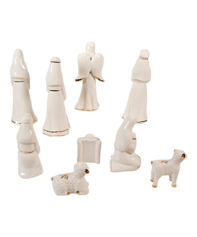 CompareAdd to wishlistThis elegant gold and white nativity set from Kurt Adler is a beautiful addition to any home or office holiday décor. Included in this set are Mary, Joseph, Baby Jesus, Three Wisemen, an angel and two sheep.