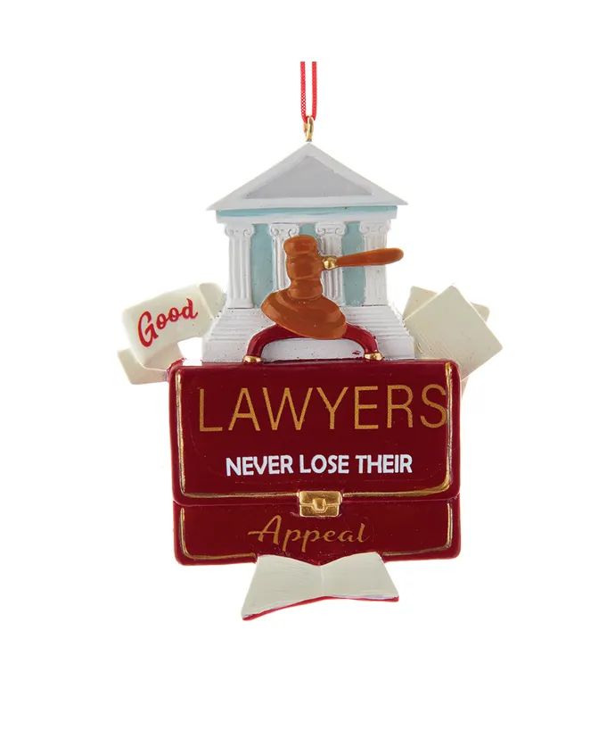 CompareAdd to wishlistThis lawyer’s appeal hanging ornament from Kurt Adler is a fun and festive addition to any holiday décor or Christmas tree. Perfect for the lawyer in your family this ornament is decorated with glittered accents.