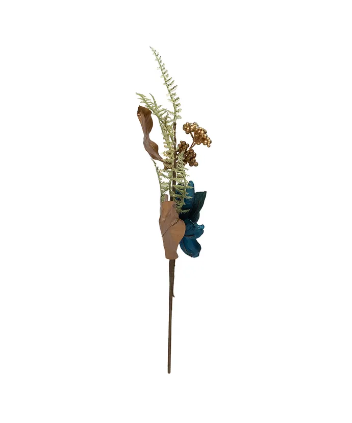 Whether you’re looking to create a captivating centerpiece, add a pop of color to a seasonal wreath, or enhance your table settings, it is the perfect choice and can be used in floral arrangements for weddings, parties, or even as a chic decoration for everyday living spaces. With its lifelike and intricately crafted design, this decorative spray combines the best of both worlds – the timeless beauty of magnolia blooms and a stylish teal blue and copper color scheme.