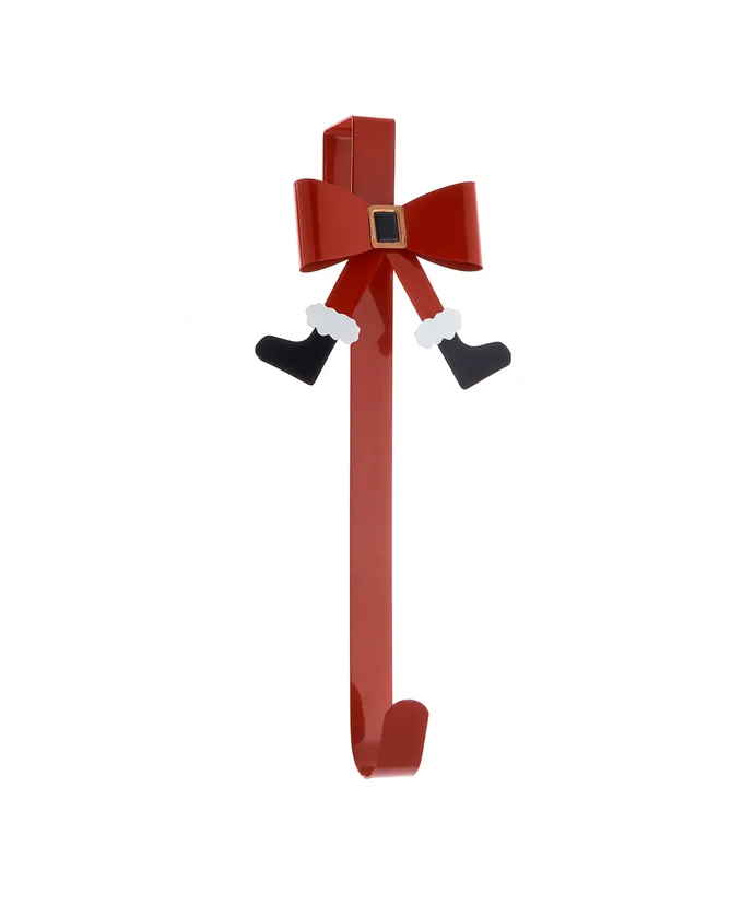 This Metal Bow With Elf Legs Wreath Hanger adds a touch of whimsy and festive flair to your door. This charming hanger combines the elegance of a bow with the playful charm of elf legs, creating a unique and delightful way to display your holiday wreaths. Crafted with attention to detail, each wreath hanger features a beautifully crafted metal bow that adds a touch of sophistication to your door decor. The whimsical addition of elf legs, complete with striped stockings and curled shoes, brings a sense of joy and lightheartedness to your holiday display. It is designed to securely hold your favorite wreaths, whether they’re classic evergreen wreaths, festive berry wreaths, or any other holiday-themed wreaths. The sturdy construction ensures stability while adding a touch of charm to your entryway. Measuring approximately 14 inches, these wreath hangers are suitable for a variety of door sizes. The combination of the metal bow and elf legs creates a focal point that captures the spirit of the season and welcomes guests with a sense of holiday whimsy. Celebrate the magic of Christmas with this wreath hanger and let these delightful and playful accessories become a standout feature in your holiday decor. They are not just functional hangers; they are a festive expression of joy and a charming way to welcome the holiday spirit into your home Read more