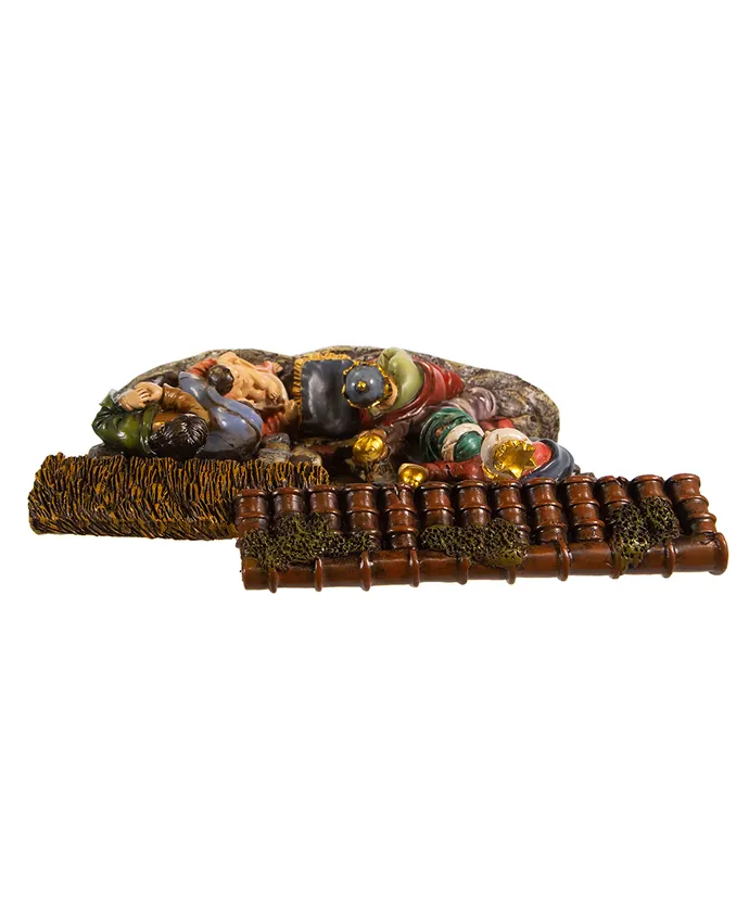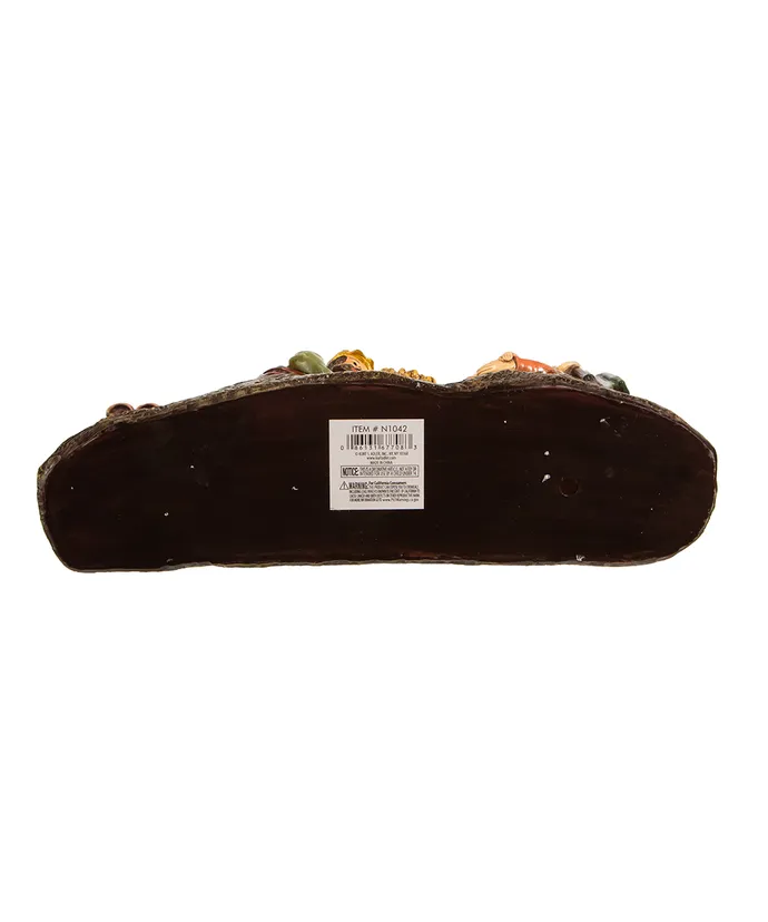 Celebrate and remember the true meaning of Christmas with this 10-inch resin Nativity table piece from Kurt Adler. This piece features a wooden stable design and stationary characters from the nativity scene in intricate detail. Figures include, the Holy Family, the Three Wise Men, an angel, a shepherd and a cow.