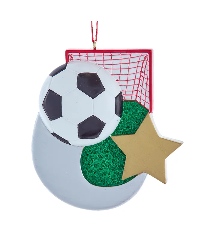 CompareAdd to wishlistThis soccer with star ornament from Kurt Adler is a fun addition to your holiday décor or Christmas tree. It features a soccer ball, a green glittered pitch and a gold star. There is ample room to personalize this ornament.