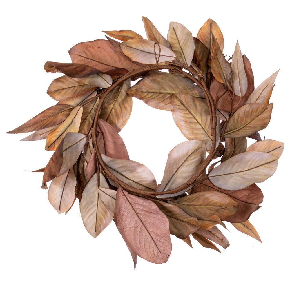 Vickerman 24″ Brown Magnolia Leaf Wreath. It measures 24 by 12 inches.