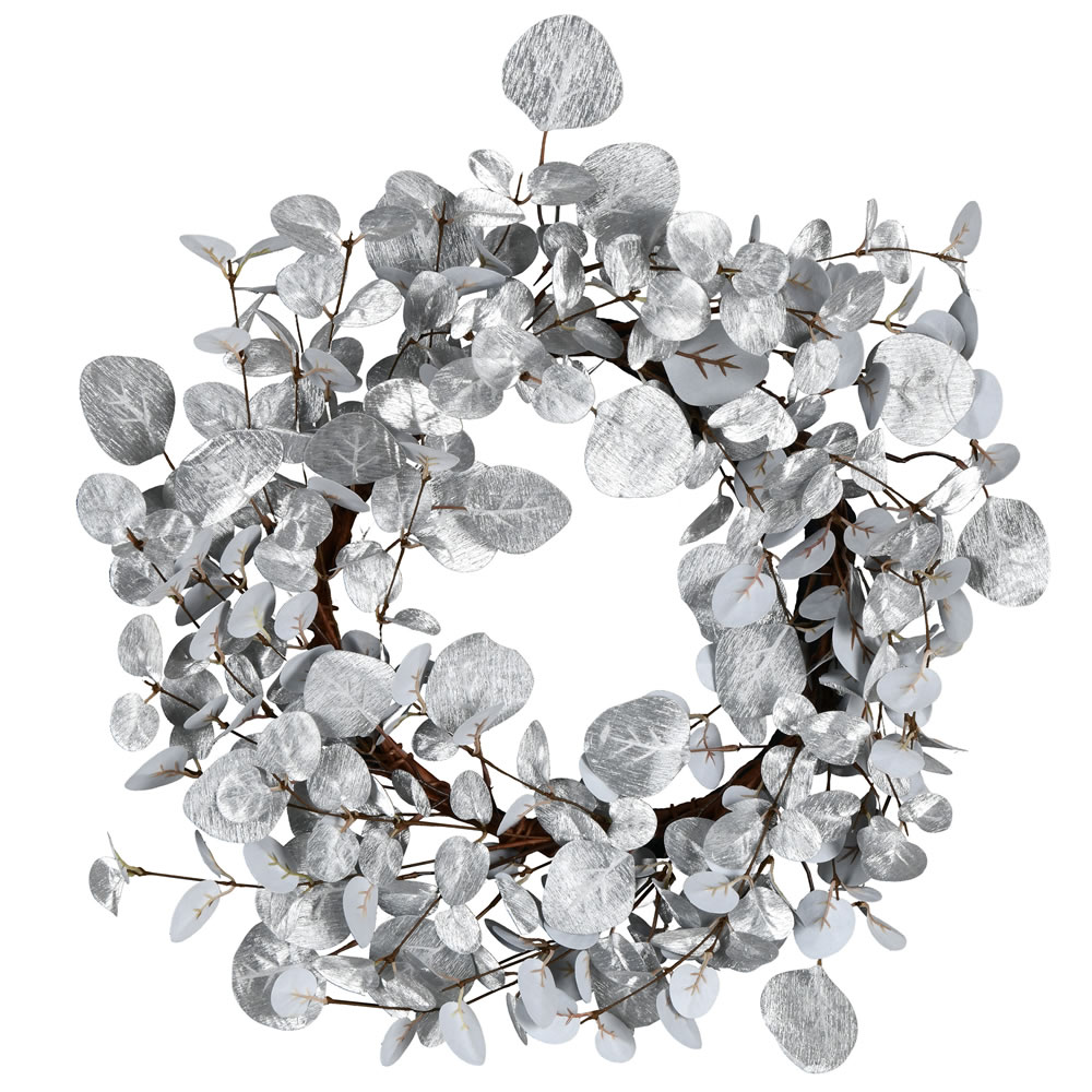 Vickerman 22″ Silver Eucalyptus Artificial Christmas Wreath. Incorporate bright and modern holiday décor into your space with this beautiful Wreath. This wreath is the perfect addition to any holiday decor. It features Silver eucalyptus leaves on a woven brown twig base. The wreath measures 22″ across the diameter from the end of one tip to another.